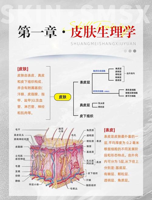 皮肤构造分几层?各层功能有何不同? 我们将皮肤分为三个主要的解剖层,从外到内依次是:表皮、真皮、皮下组织,还有一些重要的皮肤附属器。(图片来源网络,侵删) 第一层:表皮 - 身体的“城墙” 表皮是皮肤最外层的一层,我们肉眼所见的皮肤状态主要由表皮决定,它没有血管,营养来自于真皮层的扩散,表皮的主要功能是保护,防止外界物理、化学、生物的...