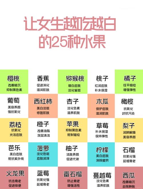 吃水果真能让宝宝皮肤变白吗? 这是一个非常普遍且美好的愿望!很多准妈妈都希望通过饮食,让宝宝出生后拥有健康白皙的皮肤。(图片来源网络,侵删) 我们要明确一个核心观念:宝宝的肤色主要由遗传基因决定,后天的饮食并不能从根本上改变天生的肤色。 均衡、健康的饮食能够为宝宝的皮肤发育提供充足的营养,让皮肤更健康、更水润、有光泽,从而看起来...