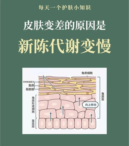 怎样加快皮肤新陈代谢 当然可以!加快皮肤新陈代谢是一个非常棒的目标,它能让皮肤看起来更光滑、更透亮、更有光泽,并且有助于改善痘痘、色斑和细纹等问题。(图片来源网络,侵删) 皮肤代谢的过程,简单来说就是:新生的皮肤细胞在皮肤底层形成,然后逐渐向上推移,最终到达皮肤表面,老化、受损的细胞则会自然脱落。 这个循环周期大约是28...