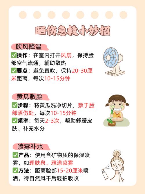 太阳晒后皮肤痛怎么办 非常理解您现在皮肤疼痛的难受感觉!太阳晒后皮肤痛,医学上称为“日灼伤”(Sunburn),是皮肤对紫外线过度暴露后的急性炎症反应,皮肤痛、发红、发热是典型的症状。(图片来源网络,侵删) 请不要慌张,可以按照以下步骤进行紧急处理和后续护理,以缓解不适并促进皮肤修复。 第一步:紧急处理(晒后6-24小时...