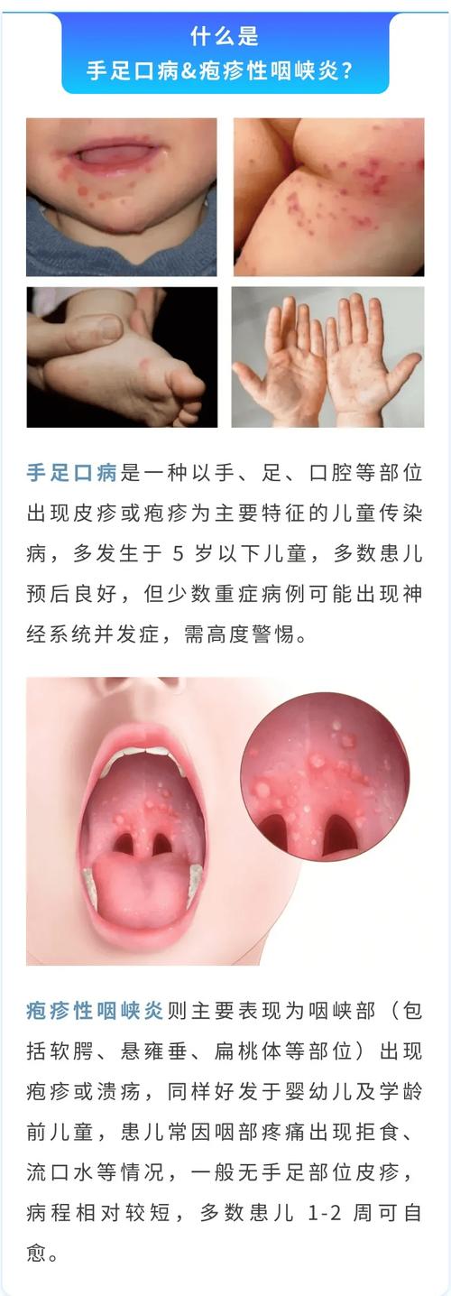 - 伴随症状: 通常会伴有喉咙痛、流口水、拒食、烦躁不安等,口腔内的疱疹(咽峡炎)可能此时还不太明显,但孩子已经因为喉咙痛而不舒服。