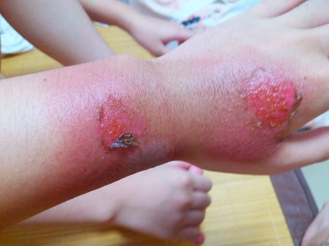 - 水疱形成与剥脱:很快,红斑上出现松弛、薄壁、易破的水疱,水疱破裂后,皮肤大面积剥脱,露出湿润的、类似二度烫伤的创面。