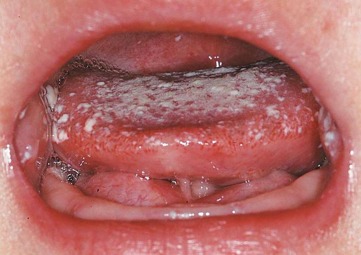 - 这是最核心的症状,口腔黏膜(包括舌头、内颊、上颚、嘴唇内侧等)上会出现像牛奶或豆腐渣一样的小斑点。