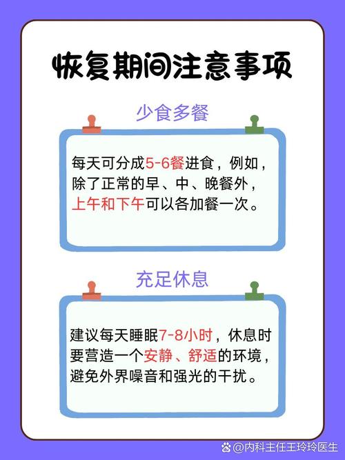 - 症状缓解后,可以逐渐过渡到软食和普通饮食。