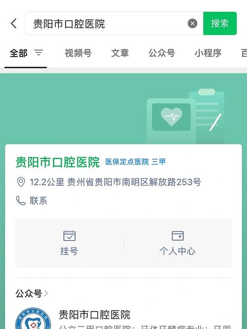 - 搜索公众号: 在微信中搜索 “贵阳市口腔医院” 或 “贵阳市口腔医院服务平台”,并关注。