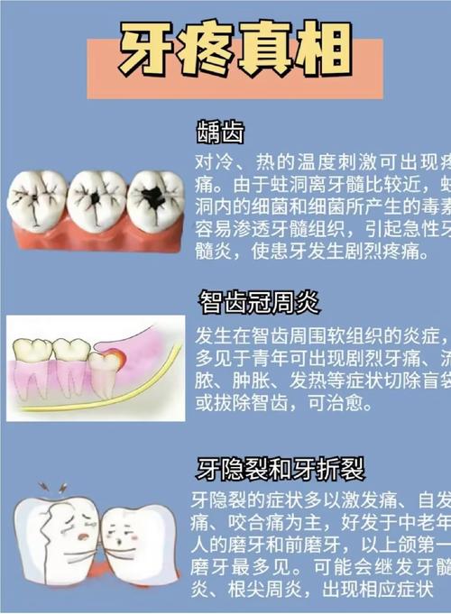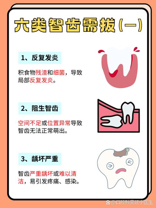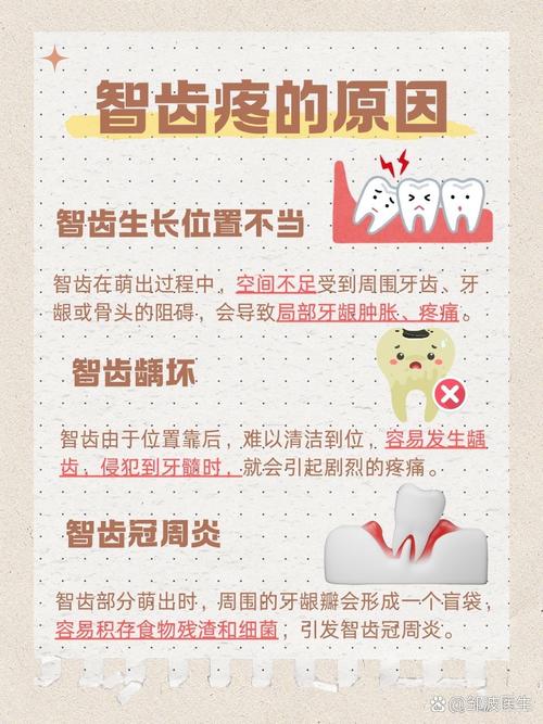 - 智齿冠周炎: 这是最常见的急性问题,部分萌出的智齿,其牙龈组织会形成一个“盲袋”,食物残渣和细菌极易在此堆积,难以清洁,当身体抵抗力下降时,就会引发急性炎症,导致牙龈红肿、疼痛、张口受限,甚至可能发烧。