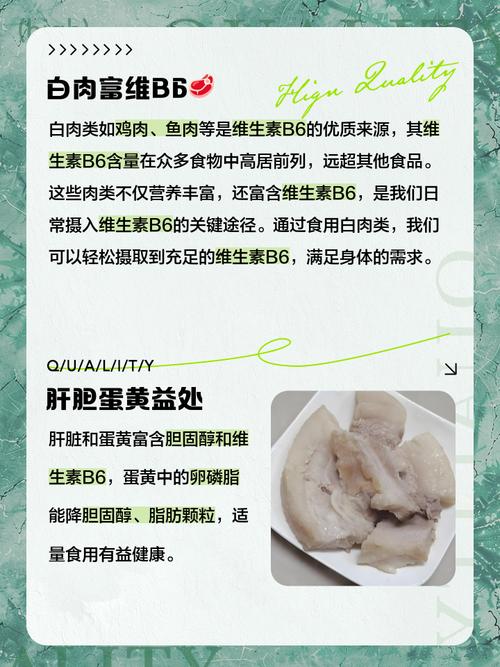 - 动物肝脏:如牛肝、鸡肝,是维生素B6的“超级来源”,但因其胆固醇和维生素A含量较高,建议适量食用。