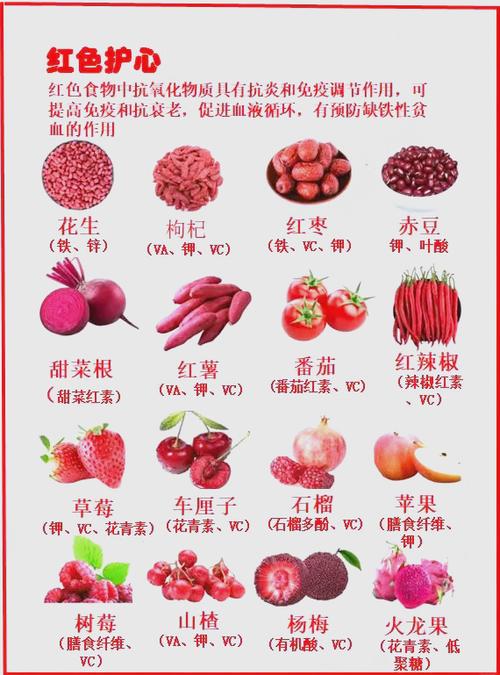 - 推荐食物:蓝莓、草莓、樱桃、苹果、梨、柑橘类水果等,这些水果富含花青素、类黄酮等抗氧化物质。
