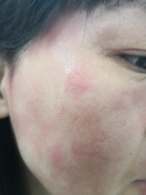 想象一下,您在使用了某种新的面霜或化妆品后,脸颊或额头靠近使用部位的皮肤,突然出现了一块或几块鲜红色的、形状不规则的斑块,这些摸上去感觉有点发烫和肿胀,上面布满了像蚊子叮咬后一样的小红点(丘疹),整个区域奇痒无比,忍不住想去抓挠,如果情况严重,红斑上甚至能看到透明的小水泡。