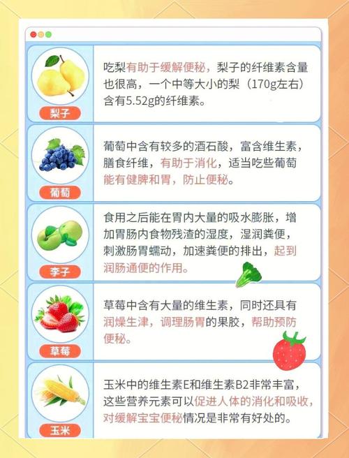 - 原理: 水果中的纤维和天然糖醇能双重作用,有效促进肠道蠕动。