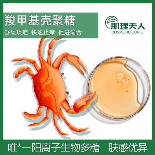 壳聚糖:是从虾、蟹等甲壳类动物的外壳中提取的一种天然高分子聚合物,也被称为“第六生命要素”,它具有许多优异的生物活性,使其成为皮肤护理领域的明星成分。