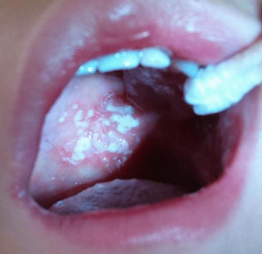 - 医生通常会开具制霉菌素口服悬液,用药时,用滴管或棉签将药液涂在宝宝口腔内的所有白斑处,每天3-4次,疗程通常为7-10天。