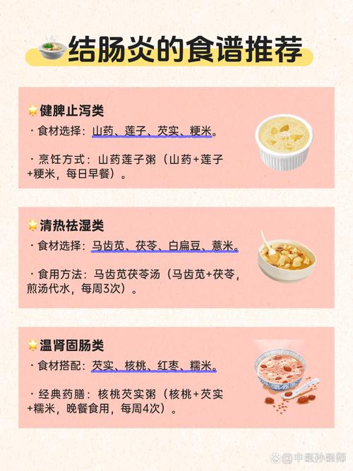 以下是一份详细的慢性结肠炎饮食指南,包含核心原则、推荐食物、需避免食物以及实用的饮食策略。