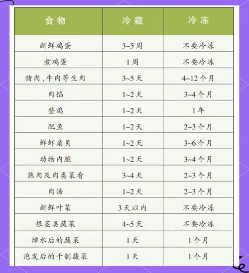 这是一个非常好的问题,也是每个家庭都需要了解的常识,冰箱里的食物能储藏多久,取决于食物的种类、储存方式以及冰箱的温度设定。