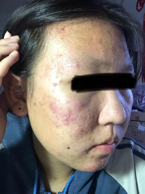 - 痘印颜色非常深,持续数月不退,严重影响美观。