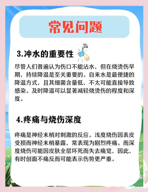- 后续护理: 保持伤口清洁干燥,穿宽松、柔软的衣物避免摩擦,密切观察,如果出现水泡、红肿加剧或感染迹象(如流脓、发热),应立即去医院。