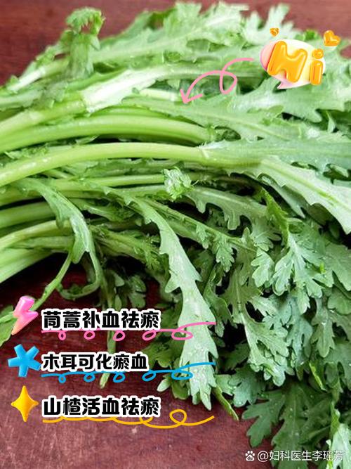 - 功效:菠菜富含铁元素,是补血的佳品,中医认为“血为气之母”,血足则气行,气血通畅则瘀自消,菠菜中的维生素K有助于维持血管壁的弹性。