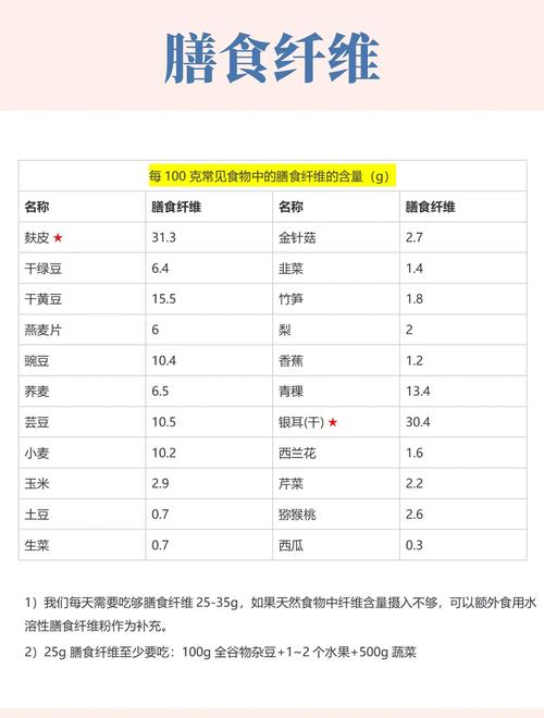 - 循序渐进:如果你平时吃纤维较少,突然大量增加摄入可能会引起腹胀、胀气等不适,建议逐渐增加纤维的摄入量,并确保同时喝足够的水(每天1.5-2升),因为纤维需要水分才能膨胀,发挥其作用。