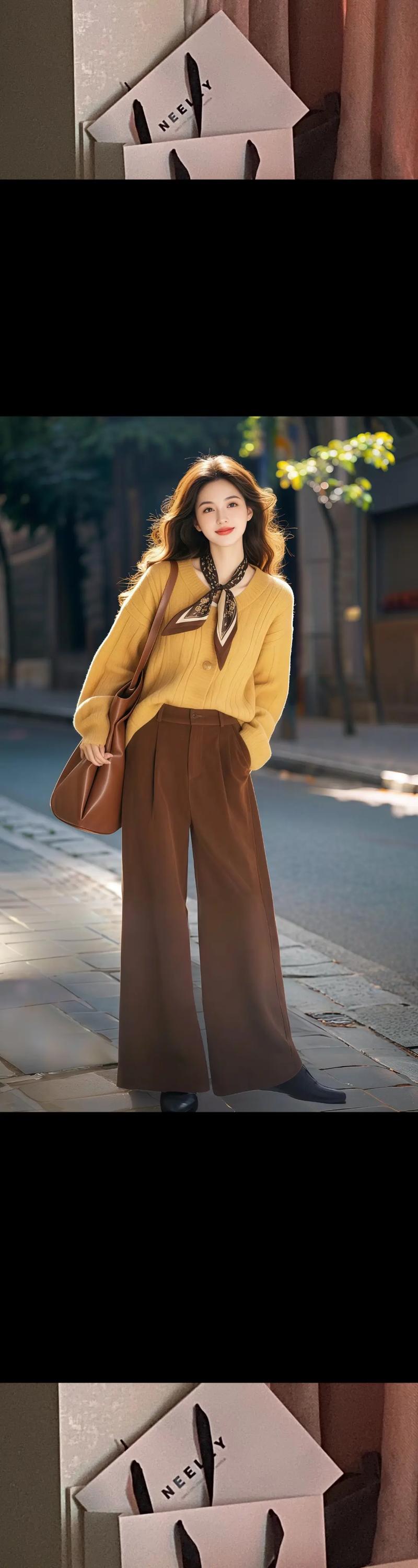- 棕色系: 浅棕色(如卡其色、浅驼色)容易显黑、显气色差,但深棕色、巧克力色、咖啡色等深色调的棕色,非常显白、显气质,是黄皮秋冬的绝佳选择。