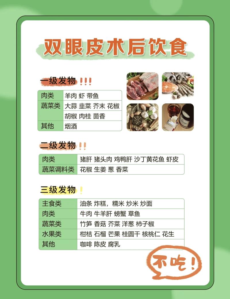 | 绝对避免 | 辛辣食物、海鲜、羊肉、酒精、人参、酱油、坚果 | 加重肿胀、引发过敏、增加感染、导致出血、造成色素沉着、牵拉伤口 |