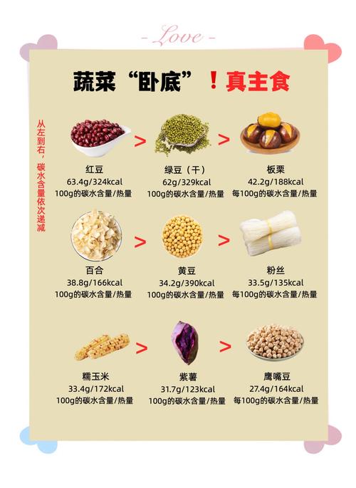 | 淀粉类蔬菜 | 豌豆、蚕豆、毛豆 | 它们既是蔬菜,也含有较高的碳水化合物。 |
