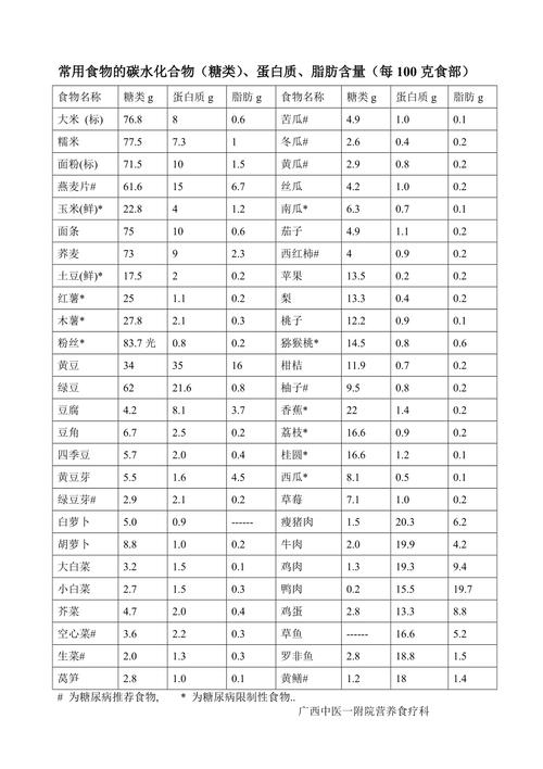 | 全谷物 | 糙米、燕麦、藜麦、全麦面包、全麦面条、玉米、小米、黑米、荞麦 | 强烈推荐!富含膳食纤维、B族维生素和矿物质,升糖指数较低,饱腹感强。 |