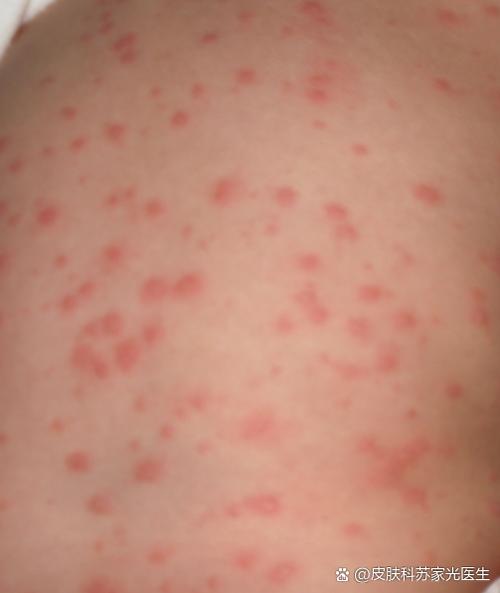 - 特点:在腰、腹、四肢等暴露部位出现红色风团样丘疹,顶端常有小水疱,非常痒,成群出现,但不会像荨麻疹那样“时隐时现”。