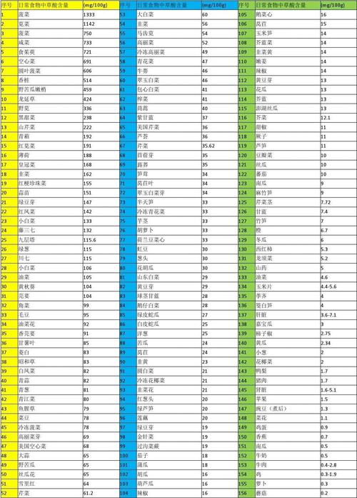 以下是一些草酸含量较高的食物,可以分为几大类: