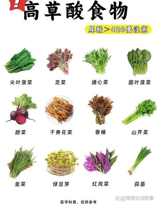 - 空心菜/蕹菜: 草酸含量较高。