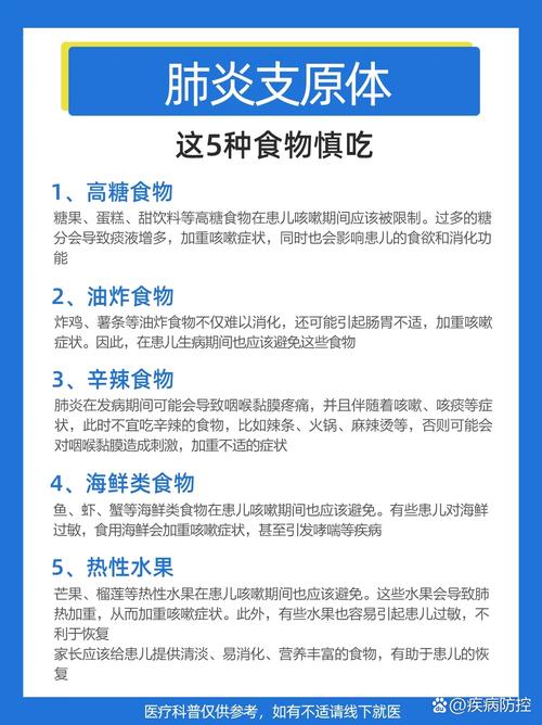 - 生冷、寒凉食物: 如冰淇淋、冰镇饮料、生鱼片等,生冷食物会刺激呼吸道和消化道,可能导致咳嗽加剧或腹泻。