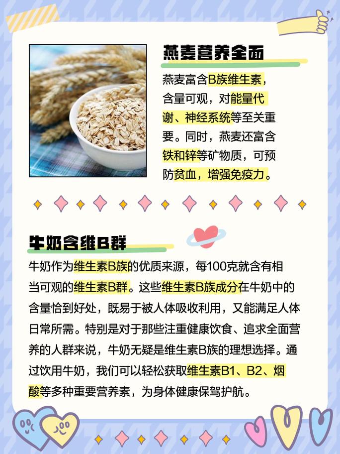 - 牛奶和酸奶: 是日常补充维生素B2最方便、最有效的来源之一,每天一杯牛奶就能满足很大一部分需求。