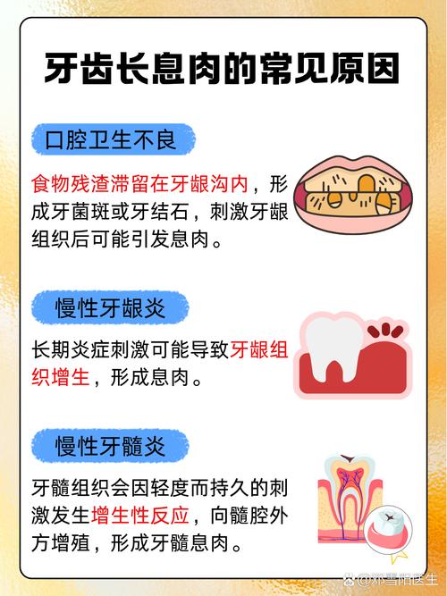 牙套(无论是金属托槽、陶瓷托槽还是隐形牙套)本身是一个异物,它会持续与口腔内的软组织(如脸颊内侧、嘴唇内侧)产生摩擦和刺激,当这种刺激超过口腔黏膜的自我修复能力时,就容易引发炎症反应,形成息肉,这些息肉在医学上更常被称为“创伤性溃疡”或“纤维性增生”。