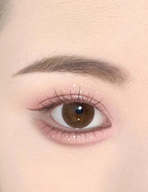 - 提亮: 眼皮中央和卧蚕用香槟色或浅米色提亮。