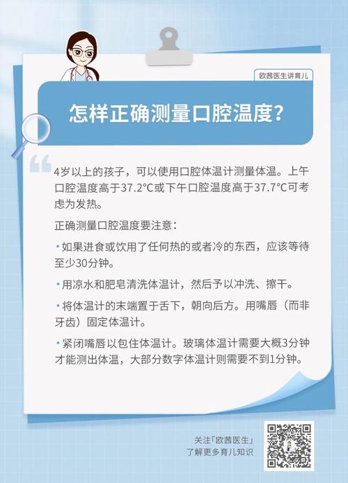 明确测量部位:在测量前和记录结果时,一定要注明是“腋温”还是“口温”。不要将不同部位的测量结果直接进行比较。