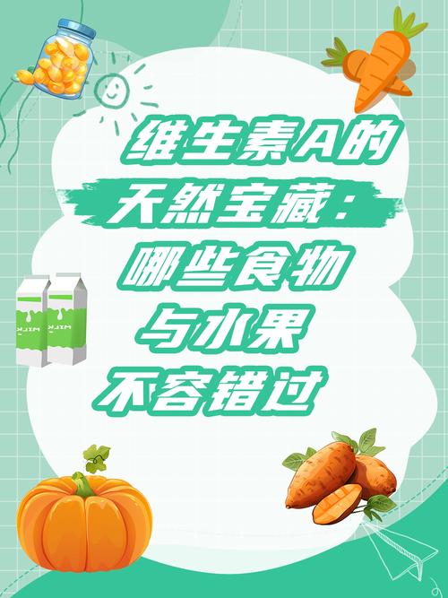 - 维生素A原(类胡萝卜素):主要存在于植物性食物中,如水果和蔬菜,它们需要在人体内(主要是肝脏)转化为维生素A才能被吸收利用,最常见的维生素A原是β-胡萝卜素。