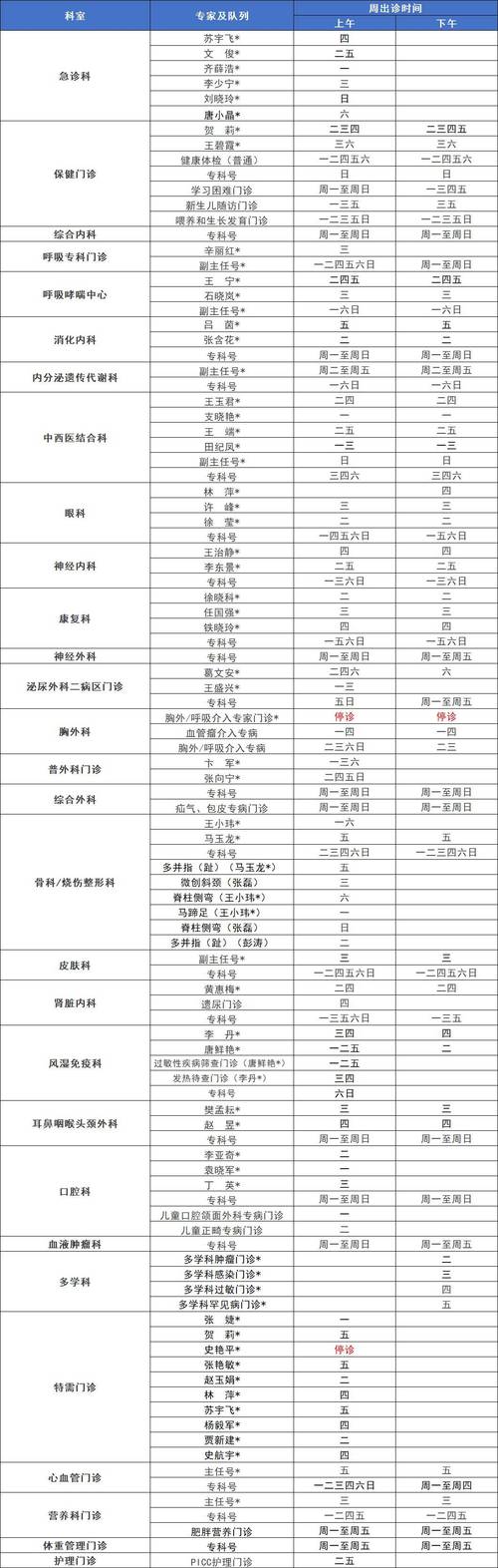 以下信息是基于医院公开资料整理的,具体出诊时间请务必以上述官方渠道查询为准。