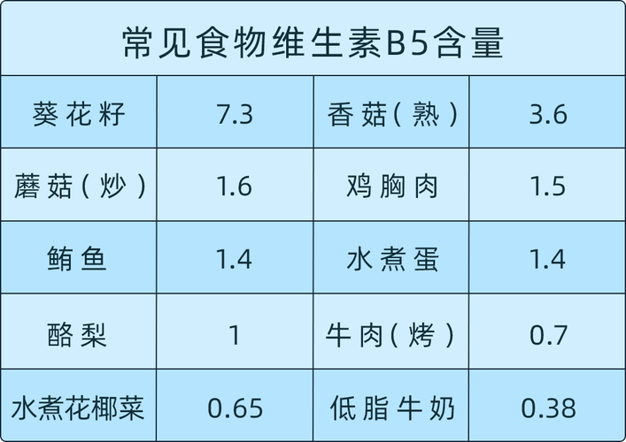 | 坚果/种子 | B1, B5, B6 | 葵花籽、芝麻、杏仁、核桃 |