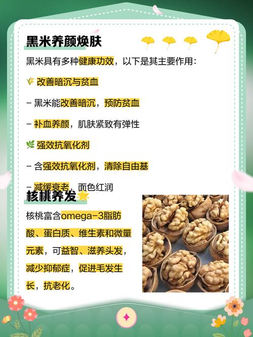 - 传统“黑色”食物:从中医角度看,“以形补形,以色补色”,黑芝麻、黑豆、黑米、桑葚等被认为对滋养肾精、乌发固发有好处,它们富含多种维生素、矿物质和抗氧化物。