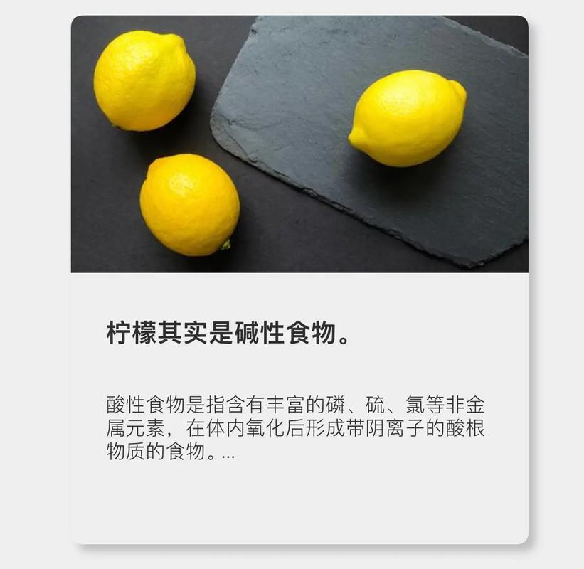 在营养学和健康领域,我们更关心的是食物进入人体后对体液酸碱度的影响,在这个层面上,柠檬被归类为碱性食物。