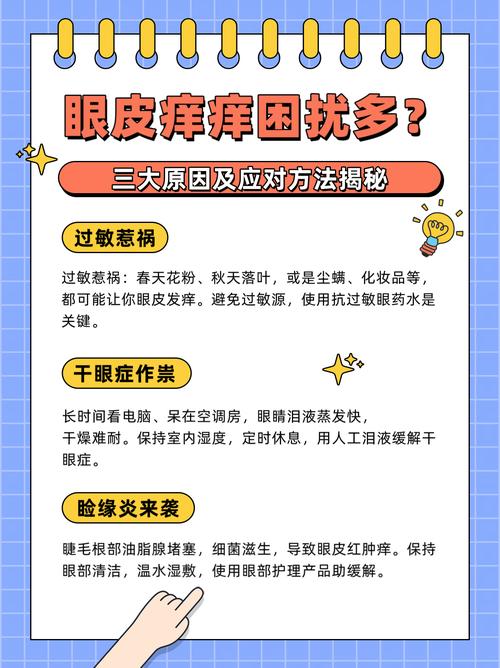 - 诱因:接触了过敏原,如新的眼霜、化妆品(尤其是眼影、睫毛膏)、洗面奶、洗发水、花粉、尘螨、宠物毛发、甚至某些食物。