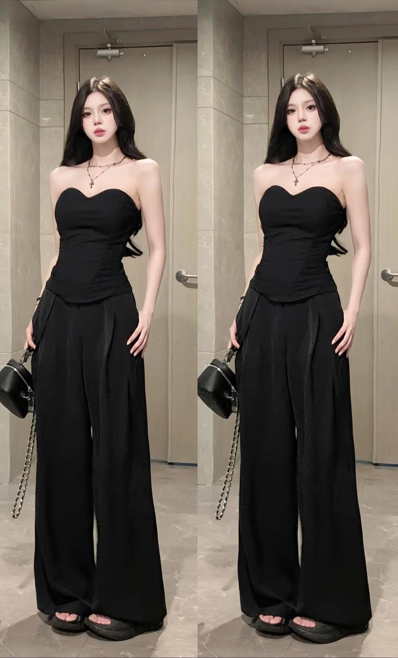- 露出皮肤线条:选择V领、U领、露肩或九分裤、七分裤的款式,适当露出颈部、手腕和脚踝的皮肤,可以增加呼吸感,避免全身被黑色包裹带来的压抑感。