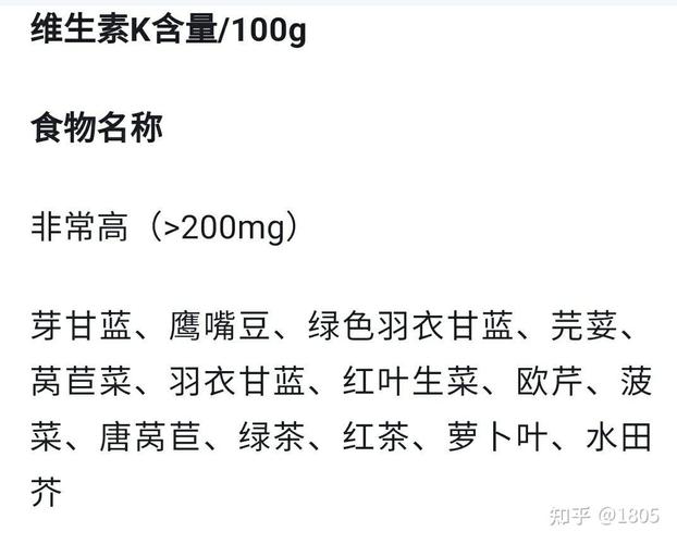 - 特殊人群注意:如果您正在服用华法林等抗凝血药物,饮食中维生素K的摄入量需要保持相对稳定,避免大幅波动,以免影响药效,请务必遵循医生的具体指导。