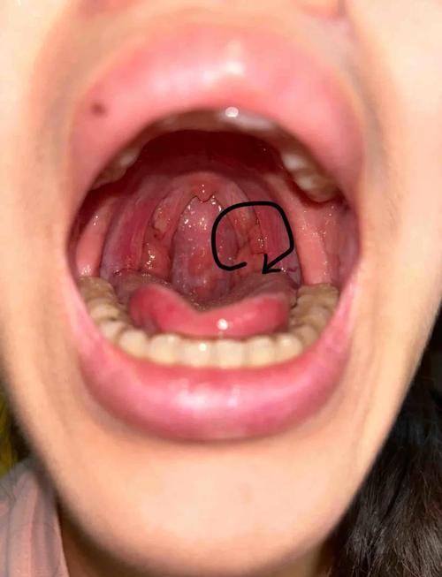 - 舌根: 舌的后部,可以看到一些淋巴组织聚集成的小结节,称为“舌扁桃体”,这是正常的生理结构。