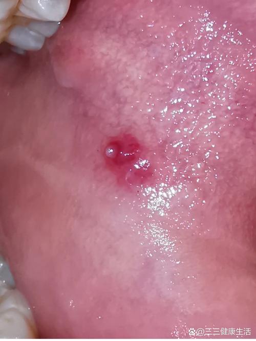- 特点:通常是由于小唾液腺的导管被堵塞,分泌的唾液无法排出,形成一个充满透明或半透明粘液的囊袋,它可能看起来像一个小水泡或半透明的硬块,质地柔软或稍韧,一般没有痛感,但有时会因咬伤等原因突然变大。