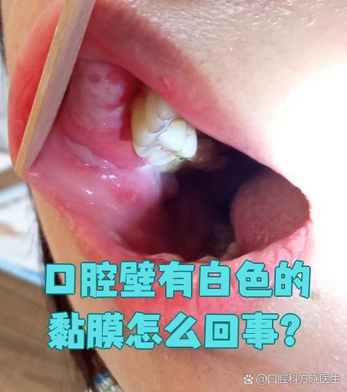 - 表现:口腔黏膜(尤其是颊内侧)呈半透明的白色或灰白色,像一层水泡覆盖在黏膜上,质地柔软,没有明显疼痛,用棉签轻轻擦拭可以刮掉,但黏膜下会很快再形成一层。