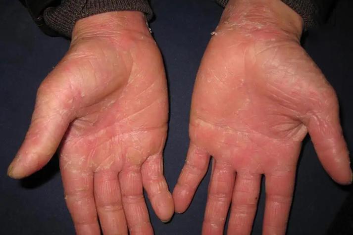- 特点:表现为毛囊性坚硬的红色丘疹和鳞屑性红斑,常对称分布于手指、手背、肘膝、四肢伸侧,严重时可累及全身。