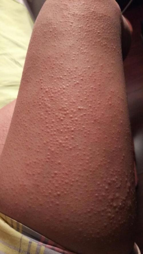 - 特点:多发生在夏秋季,常见于儿童和青少年,表现为纺锤形、红色、带小水疱的丘疹,非常痒,常成片出现,有时中央可见叮咬痕迹,多发生在腰、腹、四肢等暴露部位。