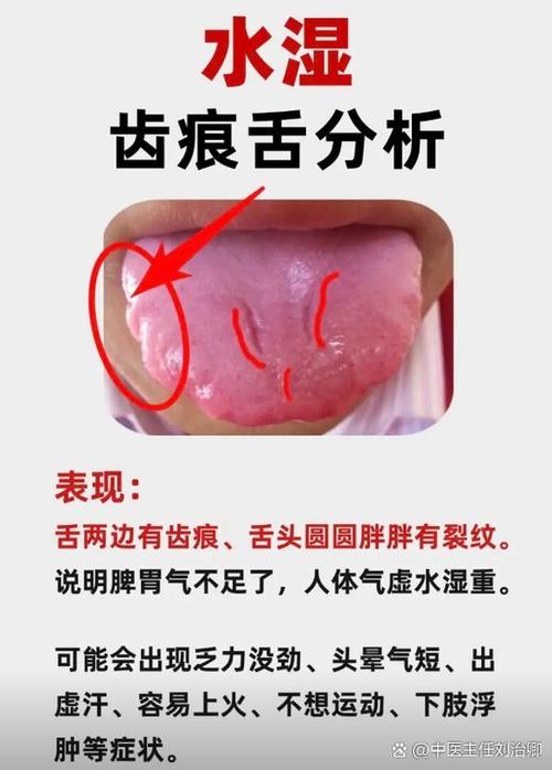 - 湿性重浊、黏滞:湿气停聚,会导致舌头胖大,胖大的舌头在口腔中容易受到牙齿的挤压,从而形成齿痕。