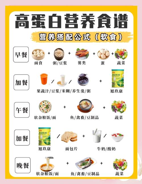 - 动物蛋白: 鸡蛋(尤其是蛋清)、牛奶、鱼肉(如鲈鱼、鳕鱼)、去皮禽肉(鸡胸肉、鸭胸肉)等,这些蛋白质含有人体必需的氨基酸,利用率高。