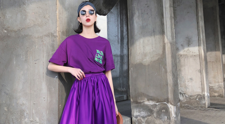 - 搭配白色:深紫+白是清新又强烈的对比,白色能很好地“提亮”深紫色的沉闷感,让整体造型看起来更清爽、更有活力,比如深紫色的半身裙搭配白色T恤或衬衫。